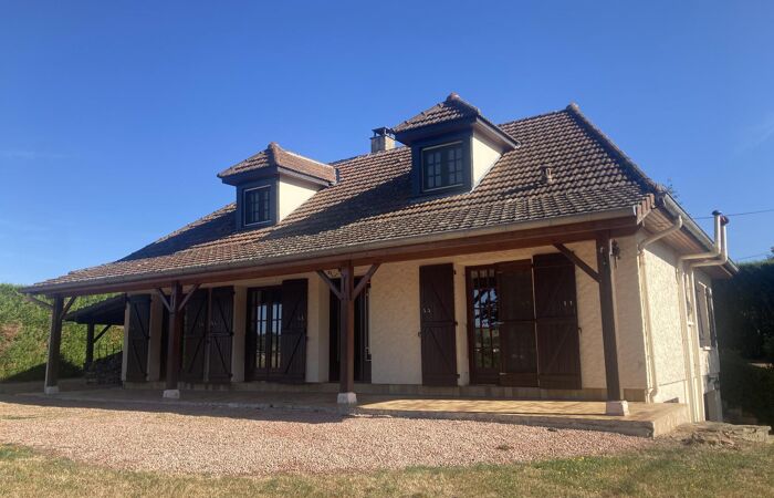 Réf : 04-5104. EXCLUSIVITÉ. Axe Chauffailles-Charlieu, Belle Maison de 158 m² habitables, comprenant : hall d'entrée, cuisine équipée, séjour-salle à manger (environ 45m2) avec cheminée (insert neuf), 2 chambres, salle d'eau, wc séparé. Etage :2 grandes chambres avec fenêtres en jacobines, dressing, wc et point d'eau. Chauffage par radiateurs électriques et cheminée bois. Sous-sol : Garage deux places et cave aménagée, espace chambre avec wc et point d'eau. Terrasse dallée et couverte sur l'avant, plus kiosque neuf. Abri bois. Jeu de boule. Assainissement individuel aux normes. Terrain de 1500m2. Emplacement au calme avec une belle vue dégagée. Logement à consommation énergétique excessive : Classe E. Plus de renseignements au 06 26 79 83 95.