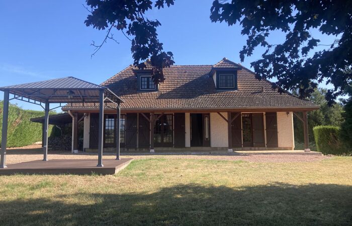 Réf : 04-5104. EXCLUSIVITÉ. Axe Chauffailles-Charlieu, Belle Maison de 158 m² habitables, comprenant : hall d'entrée, cuisine équipée, séjour-salle à manger (environ 45m2) avec cheminée (insert neuf), 2 chambres, salle d'eau, wc séparé. Etage :2 grandes chambres avec fenêtres en jacobines, dressing, wc et point d'eau. Chauffage par radiateurs électriques et cheminée bois. Sous-sol : Garage deux places et cave aménagée, espace chambre avec wc et point d'eau. Terrasse dallée et couverte sur l'avant, plus kiosque neuf. Abri bois. Jeu de boule. Assainissement individuel aux normes. Terrain de 1500m2. Emplacement au calme avec une belle vue dégagée. Logement à consommation énergétique excessive : Classe E. Plus de renseignements au 06 26 79 83 95.