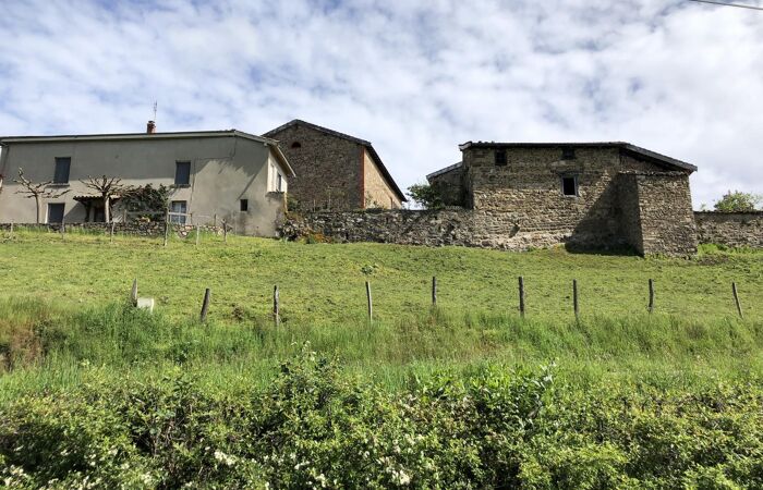 Réf : 05-4903. À 1h00 au nord-ouest de Lyon, 5mn de la gare SNCF, 8min d’Amplepuis. A St Victor sur Rhins (42), CORPS DE FERME du 16 eme siècle avec dépendances, vue panoramique sur environnement campagnard, exposition plein sud. Ferme comprenant une maison d'habitation de 95 m2, environ, dont cuisine, séjour avec cheminée, salle de bains et wc. A l'étage : 2 grandes chambres et une pièce. Nombreuses dépendances : grange, écurie, étable, stabulation. Cour et terrain attenant d'environ 13000 m².
