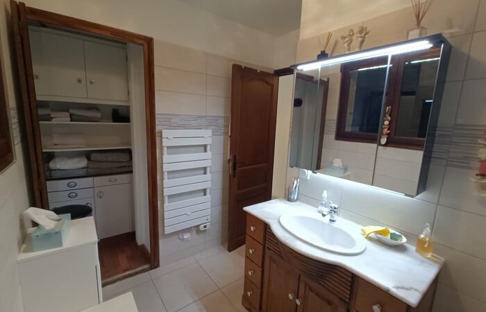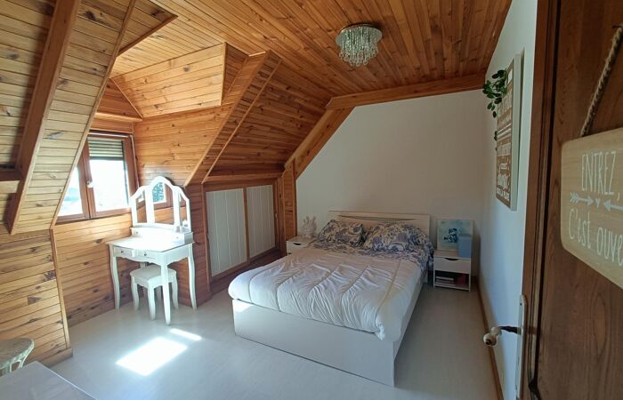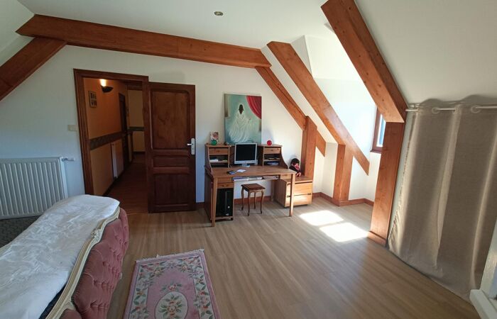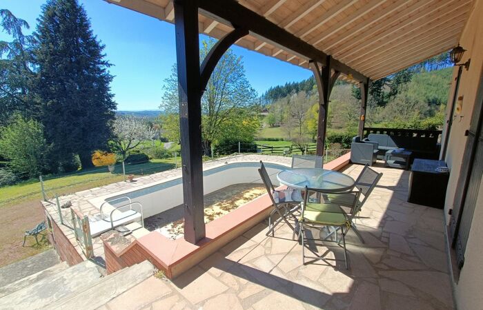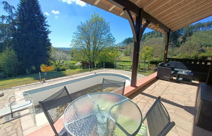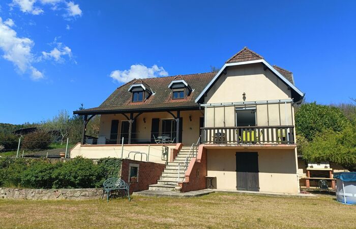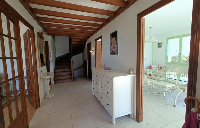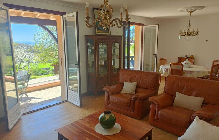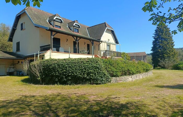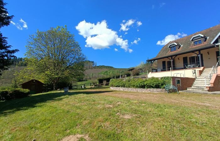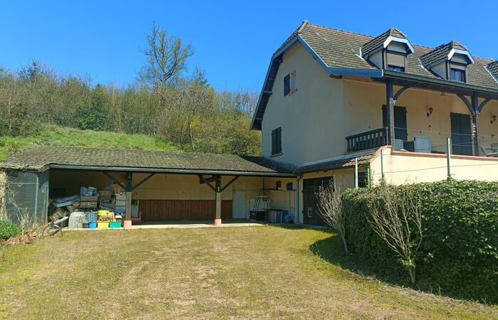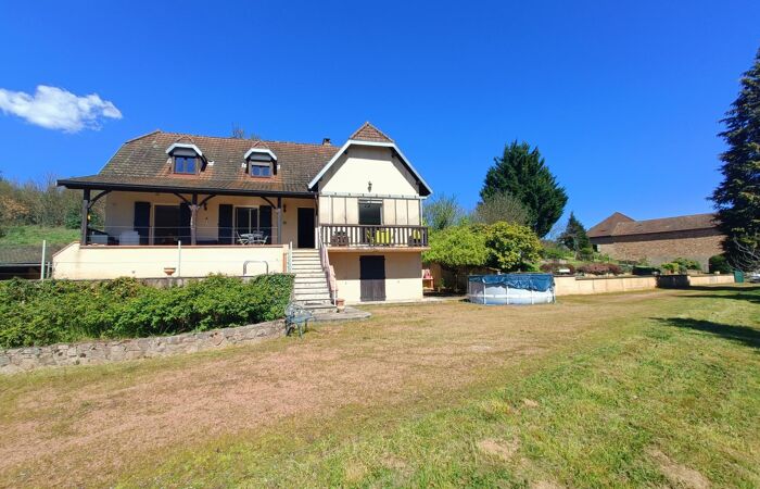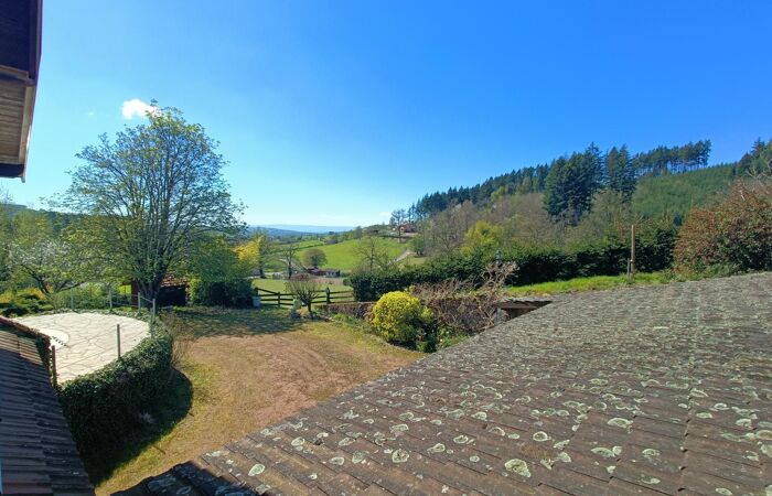 Réf 04- 5229 EXCLUSIVITÉ. A Chauffailles 71170, dans un environnement champêtre et très calme bénéficiant d'une belle vue dégagée, Magnifique maison de 206 m² construite dans les années 90, comprenant au 1er niveau un vaste hall d'entrée, un grand séjour de 32 m² ouvrant sur une terrasse plein sud et abritée, une cuisine toute équipée de 23 m² avec balcon et toile tendue, 2 chambres, une salle d'eau rénovée, wc séparé. Au deuxième niveau, 3 chambres supplémentaires de belle taille, un grand placard/dressing indépendant (qui pourrait devenir une salle de bains), petit grenier attenant. En rez-de-jardin un abri pour 3 voitures, un grand garage, cave, buanderie/chaufferie carrelée avec évier et douche, pièce de réception carrelée de 35 m² avec bar et cheminée foyer ouvert. A l'extérieur, cour en graviers, espaces paysagés en terrasses, pelouse, une terrasse de plain pied abritée par les arbres avec barbecue. Un joli terrain arboré et fleuri de 2141 m², une piscine de 8 mx4 à rénover ou à combler. Jardin clôturé avec portail automatique visiophone. Fenêtres double vitrage et volets bois. Chauffage central au Fioul, VMC double flux, Fosse septique. Plus de renseignements, Karine BAUDOIN au 06 26 79 83 95.
