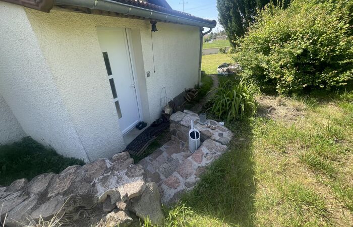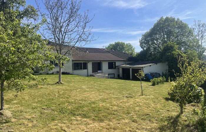 Au calme vue dégagée, cette maison de plain-pied comprend : une entrée, une buanderie, une cuisine ouvrant sur séjour et salon ouvrant sur jardin, trois chambres, un bureau, une salle d’eau, Un garage double faisant office d’atelier.