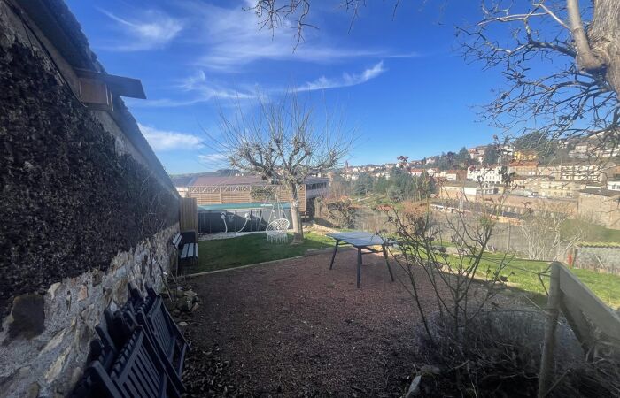 Réf : 05 5206. À 55mn au nord-ouest de Lyon, 10mn de la gare SNCF d’Amplepuis, à Thizy les Bourgs, proche des commerces et à deux pas des écoles, belle maison de bourg en pierre avec de nombreuses dépendances.