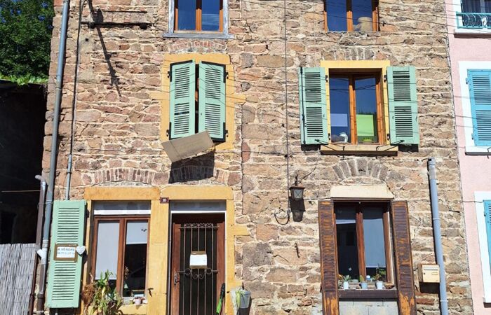 Ref-07-5020. Saint-Vincent-de-Reins (69). Située à 1 heure de Lyon, 30mn de Roanne, 15mn de la gare SNCF d'Amplepuis (ligne Roanne - Lyon), maison d'habitation de 80m2 habitable. Cette maison comprend : une cuisine, un salon, 2 chambres, 1 bureau (pouvant faire une chambre d'enfant), une cave, un espace supplémentaire pouvant être aménagé, une remise à bois et terrain attenant. Chauffage poêle à bois et électrique, double vitrage, tout à l'égout.