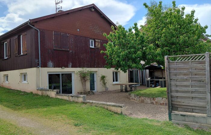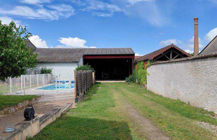 Réf 03-5062. Secteur Marcigny (71), 25mn de Roanne, 20mn de Charlieu, dans un bourg, maison d'habitation de 142 m2 habitable environ sur 1136 m2 , comprenant : hall d'entrée, cuisine ouverte sur salon-séjour, cellier-buanderie, chaufferie et wc. A l'étage : palier, 4 chambres, salle de bain et wc séparé. Grenier isolé. Double vitrage sur menuiseries PVC. Volets bois. Chauffage par pompe à chaleur. Les travaux d'isolation, d'électricité et de chauffage ont été réalisés en 2023. Piscine sécurisée (3 x 8m). Une vaste dépendance (300m2) avec atelier serait idéale pour artisan ou garage pour camping-car. Classe énergie : C. Plus d'informations au 06-85-29-73-39.