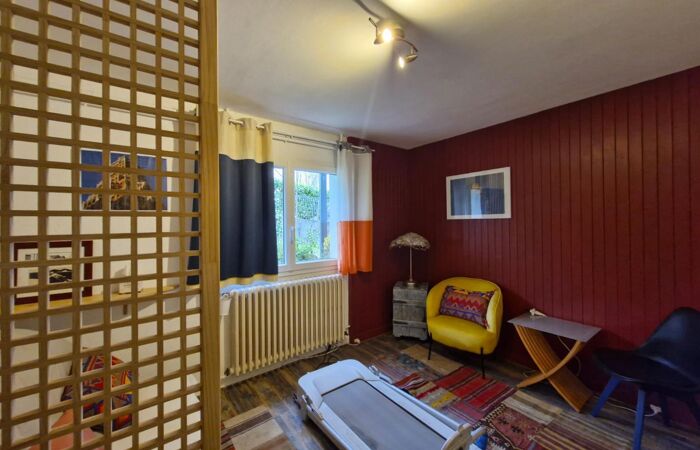 Réf 03-5217. SECTEUR MARCIGNY, à 1 km du centre ville, dans un environnement campagnard avec une vue époustouflante, maison sur sous-sol enterré de 128 m2 comprenant : hall d’entrée, cuisine aménagée, séjour-salon équipé d’un poêle à bois en pierres réfractaires et portes-fenêtres ouvrant sur une terrasse couverte. Espace nuit comprenant : un couloir desservant deux chambres, une salle d’eau et un wc séparé. Au sous-sol : une chambre avec placard, une buanderie, une chaufferie (chaudière à pellets), ainsi qu’un cellier et une cave. Garage double et bûcher. Travaux réalisés en 2021 : installation de menuiseries PVC en double vitrage, rénovation de l’électricité, mise en place de la chaudière à pellets et du poêle à bois, réfection de l’assainissement individuel. Aménagement d’une passerelle avec accès à l’entrée principale et installation d’une porte de garage automatisée. Jardin arboré avec point d'eau, arbres, verger. Classe énergie E. Plus d'informations au 06-85-29-73-39.