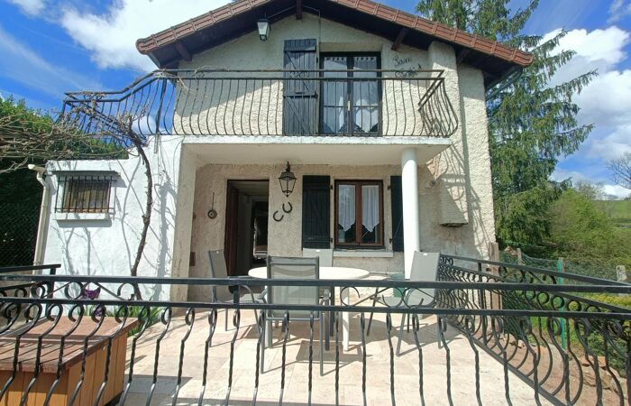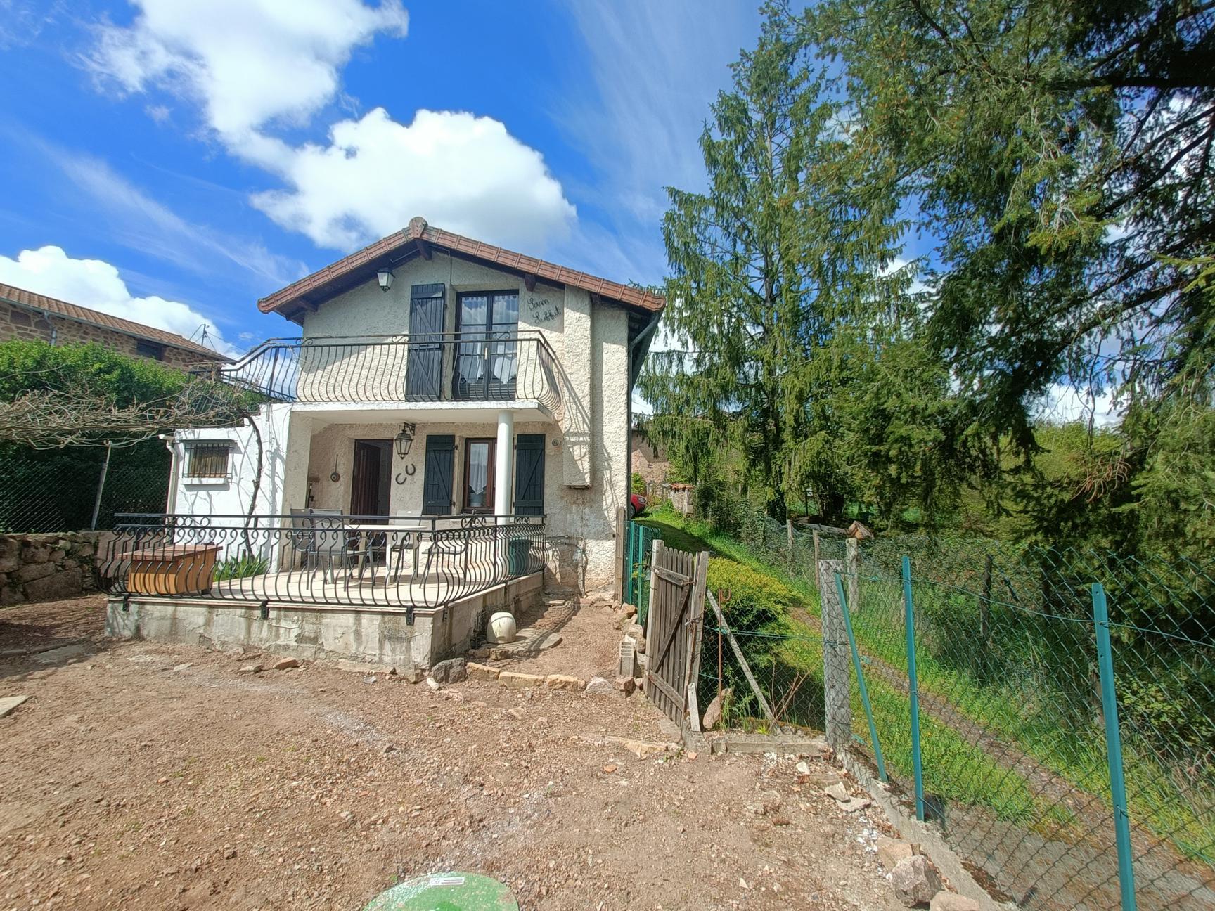 Réf 04-5235 - EXCLUSIVITÉ. Chauffailles, dans un hameau au calme, maison rustique de 75 m², exposée plein Sud, jolie vue dominante sur la campagne environnante. Rez-de-chaussée :pièce de vie semi-ouverte avec cuisine donnant sur belle terrasse carrelée neuve, salon, petite salle d'eau avec wc. Etage : pièce palière et deux belles chambres de 13 et 15 m² dont une avec balcon. Une cabane de jardin, une cave et un petit jardin clôturé complètent la maison. Chauffage central au gaz avec cuve enterrée, fosse septique, simple vitrage, pas d'isolation. Pour un pied à terre à la campagne c'est l'idéal ! pas d'entretien de terrain, juste de quoi prendre ses repas et son café en terrasse ou dans le jardin. Classe énergie :G. Plus de renseignements Karine BAUDOIN au 06 26 79 83 95