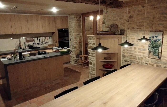 Dans la grange, magnifique salle à manger aux murs en pierre à finir d 'aménager. Chauffage, chaudière à pellets de 2019 alimentée par silo. Assainissement individuel conforme. Petite dépendance avec abri bois et au-dessus une chambre. Four à bois. Piscine hors sol, beau terrain clos et arboré avec parking. Terrain de 1291 m2. Plus de renseignements au 06 74 34 69 95.