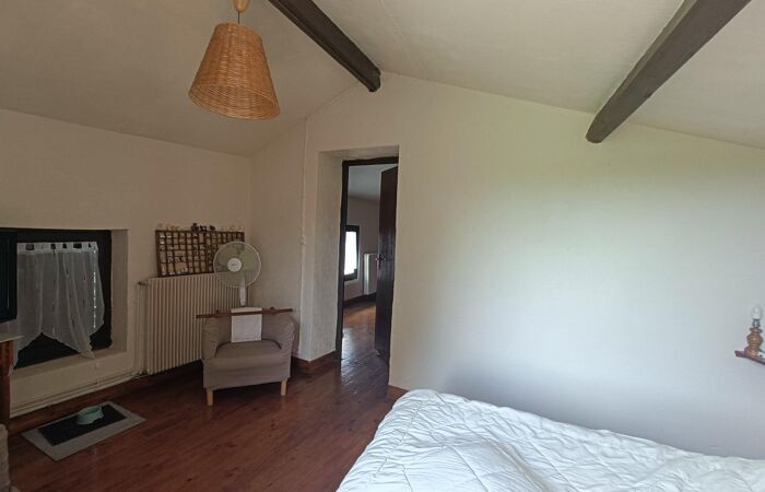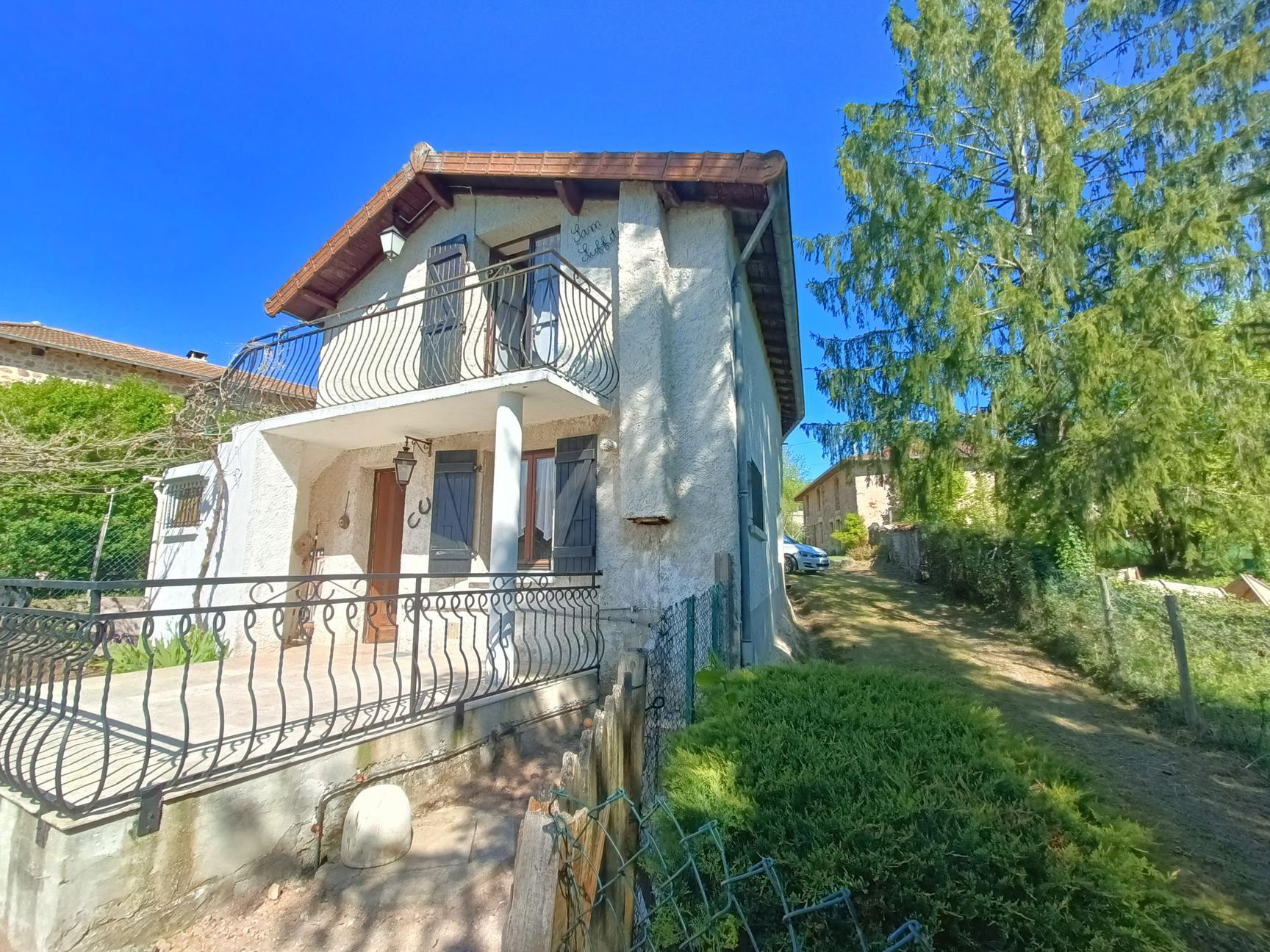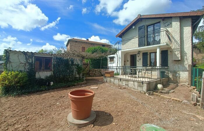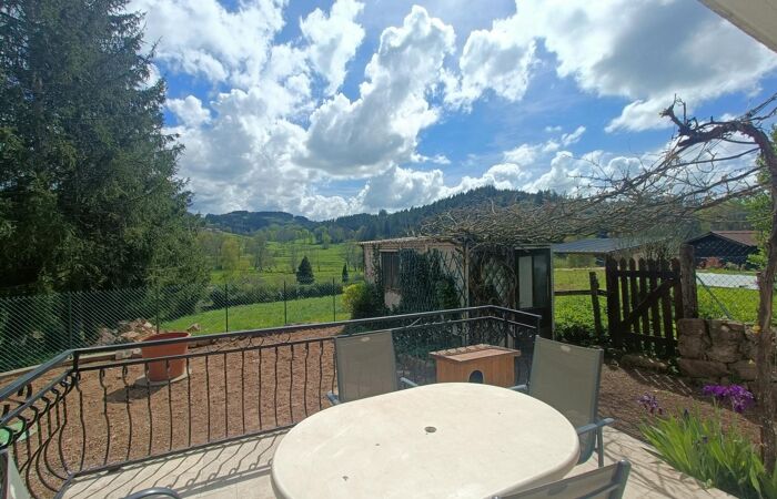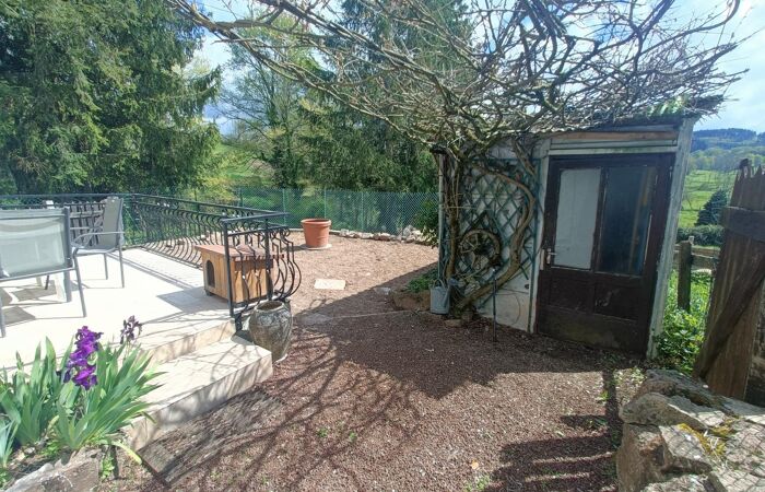 Réf 04-5235 - EXCLUSIVITÉ. Chauffailles, dans un hameau au calme, maison rustique de 77 m², exposée plein Sud, jolie vue dominante sur la campagne environnante. Rez-de-chaussée :pièce de vie semi-ouverte avec cuisine donnant sur belle terrasse carrelée neuve, salon, petite salle d'eau avec wc. Etage : pièce palière et deux belles chambres de 13 et 15 m² dont une avec balcon. Une cabane de jardin, une cave et un petit jardin clôturé complètent la maison. Chauffage central au gaz avec cuve enterrée, fosse septique, simple vitrage, pas d'isolation. Pour un pied à terre à la campagne c'est l'idéal ! pas d'entretien de terrain, juste de quoi prendre ses repas et son café en terrasse ou dans le jardin. Classe énergie :G. Plus de renseignements Karine BAUDOIN au 06 26 79 83 95